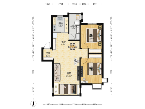 房屋戶型: 2 室1廳 -- 廚1衛(wèi)
