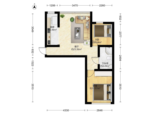 房屋戶型: 2 室2廳 1 廚1衛(wèi)