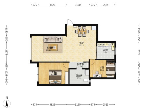 房屋戶型: 2 室2廳 1 廚1衛(wèi)