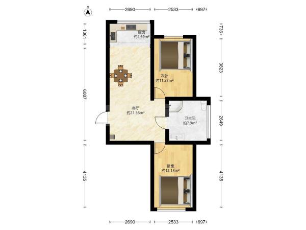 房屋戶型: 2 室1廳 1 廚1衛(wèi)