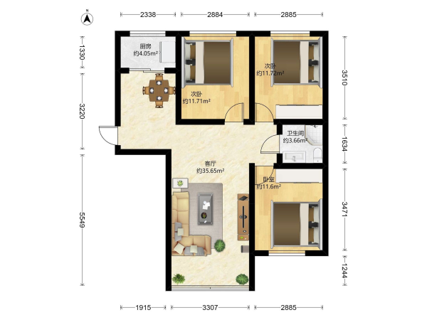 房屋戶(hù)型: 3 室2廳 1 廚1衛(wèi)