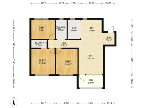房屋戶型: 3 室2廳 1 廚2衛(wèi)