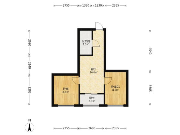 房屋戶型: 2 室1廳 1 廚1衛(wèi)