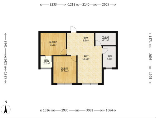 房屋戶型: 2 室1廳 1 廚1衛(wèi)