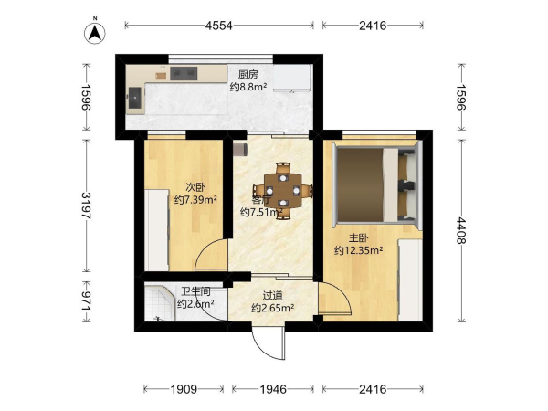 房屋戶型: 2 室1廳 1 廚1衛(wèi)