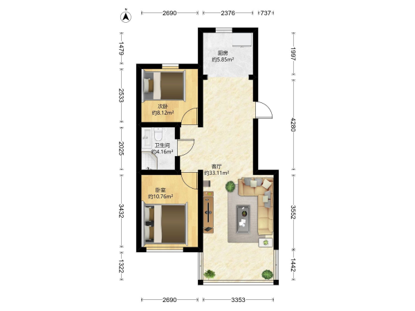 房屋戶型: 2 室2廳 1 廚1衛(wèi)