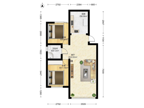 房屋戶型: 2 室2廳 1 廚1衛(wèi)