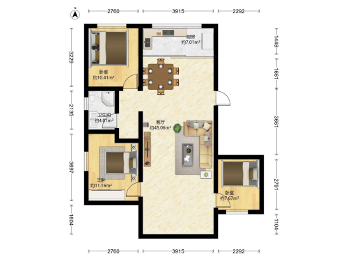 房屋戶型: 2 室2廳 1 廚1衛(wèi)