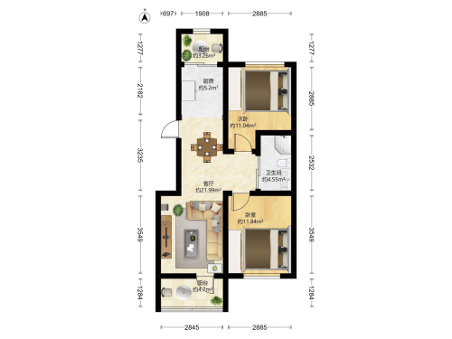 房屋戶型: 2 室1廳 1 廚1衛(wèi)
