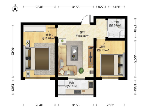房屋戶型: 2 室1廳 1 廚1衛(wèi)